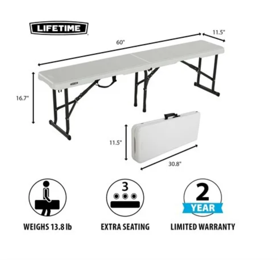 Mesa rectangular plegable LIFETIME de 1.83m color negro (tablon para 8 personas)